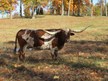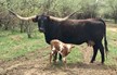 A great cross of huge horned genetics, with Rio Grande, Sunshine Tari and Overdrive. Her dam, is now 82" T2T. This bloodline is extremely slow for the first couple of years and then the horn growth explodes. 2013 bull, PCC Double Dare, by Rim Rock, that is owned by Clay Gines and SC Longhorns in NV. 2014 heifer, PCC Double Trouble, by Rim Rock.